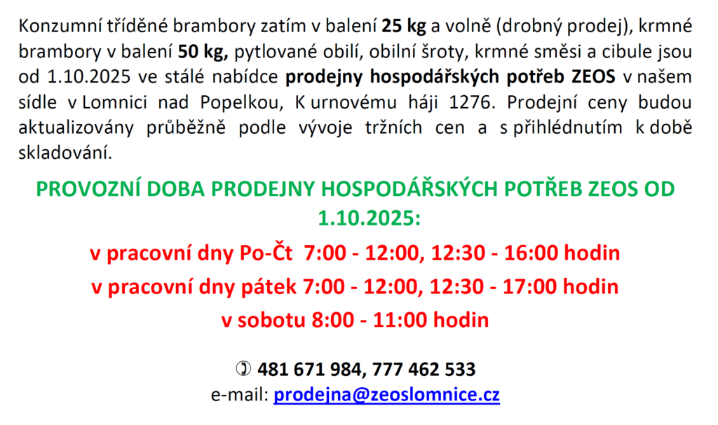 PRODEJ BRAMBOR A CIBULE NA USKLADNĚNÍ ZAHÁJEN